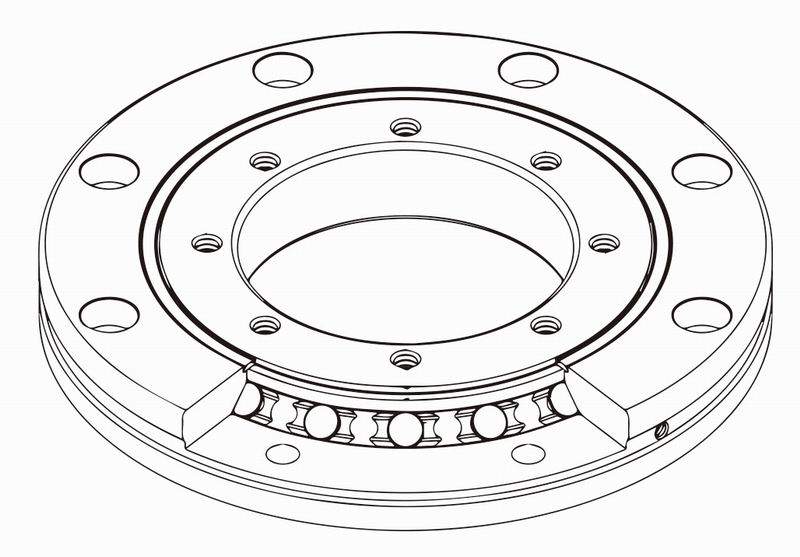 由于外圈和內(nèi)圈都有安裝孔,安裝時(shí)不需要固定法蘭和支撐座。另外,由于外圈和內(nèi)圈均為整體結(jié)構(gòu),安裝對(duì)性能幾乎沒(méi)有影響,因此能夠獲得穩(wěn)定的旋轉(zhuǎn)精度和扭矩。適用于外圈和內(nèi)圈旋轉(zhuǎn)的場(chǎng)合。